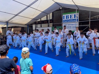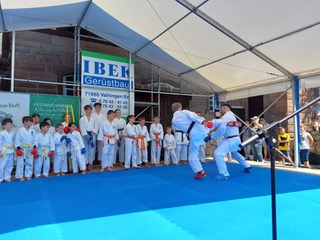 Im Anschluss an die gemeinsame Vorführung der Kata Gekisai dai ichi präsentierten die Bundeskaderathleten des Vereins, Albert Singer (unter anderem Europa-Vizemeister) und Michael Lesic (unter anderem Landes-Vizemeister), eine Wettkampf-Kata synchron, die die hochgradige Präzision und Perfektion der beiden Karatekas unterstrich. Einen weiteren Bereich des Karatesports stellt das Khion ido dar, das die grundlegenden Techniken des Karate – blocken, schlagen und treten – in Bewegung zeigt und paarweise geübt wird.