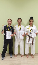 Besonders berührt der Erfolg Kezban Sahins, die nach nur viermonatiger Vorbereitung bei der Masterklasse in der Disziplin Kata Einzel der Damen Ü35 nach zwei erfolgreichen Runden mit nur 0,3 Punkten hinter ihrer Kontrahentin die Silbermedaille erringt. Kezban Sahin war bereits vor 20 Jahren eine erfolgreiche Athletin des Karate-Klubs Vaihingen an der Enz und hat eindrucksvoll bewiesen, dass sie nichts von ihrem Können und Kampfgeist verloren hat.