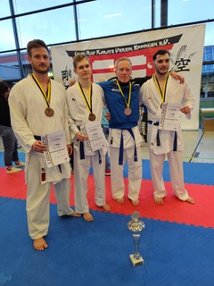 Im Finale erzielte Kimi Jäger nach einem spannenden Kampf, den er wieder gegen den Gegner des zweiten Kampfes zu bestreiten hatte, einen Gleichstand und der Kampfrichter entschied zu Gunsten des Gegners, was Kimi Jäger auf den hervorragenden zweiten Platz hievte. Kumite-Trainer André Henschel zeigte sich sehr zufrieden mit seinen Schützlingen und ist sich sicher, dass der Nachwuchs des KC Vaihingen/Enz das Potential dazu hat, ganz vorne mitzumischen.